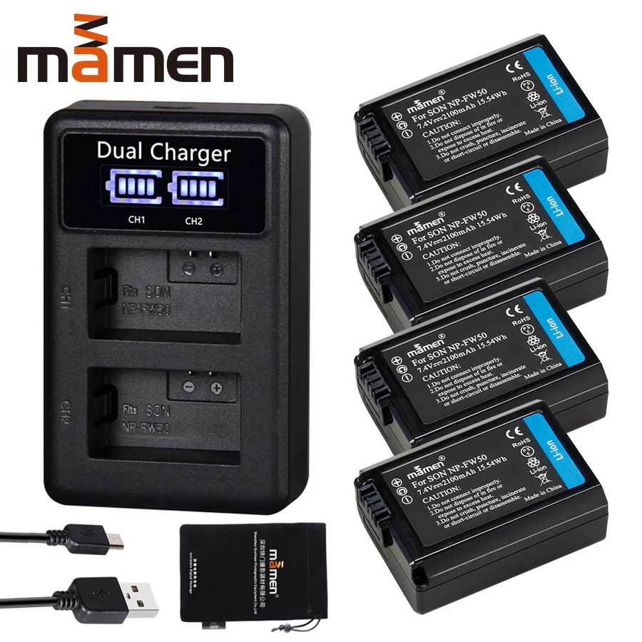 Best Seller 4pcs 2100mAh NP FW50 NP-FW50 NPFW50 Digital Camera Battery + LCD Dual Charger for Sony NEX-3 a7R a6
