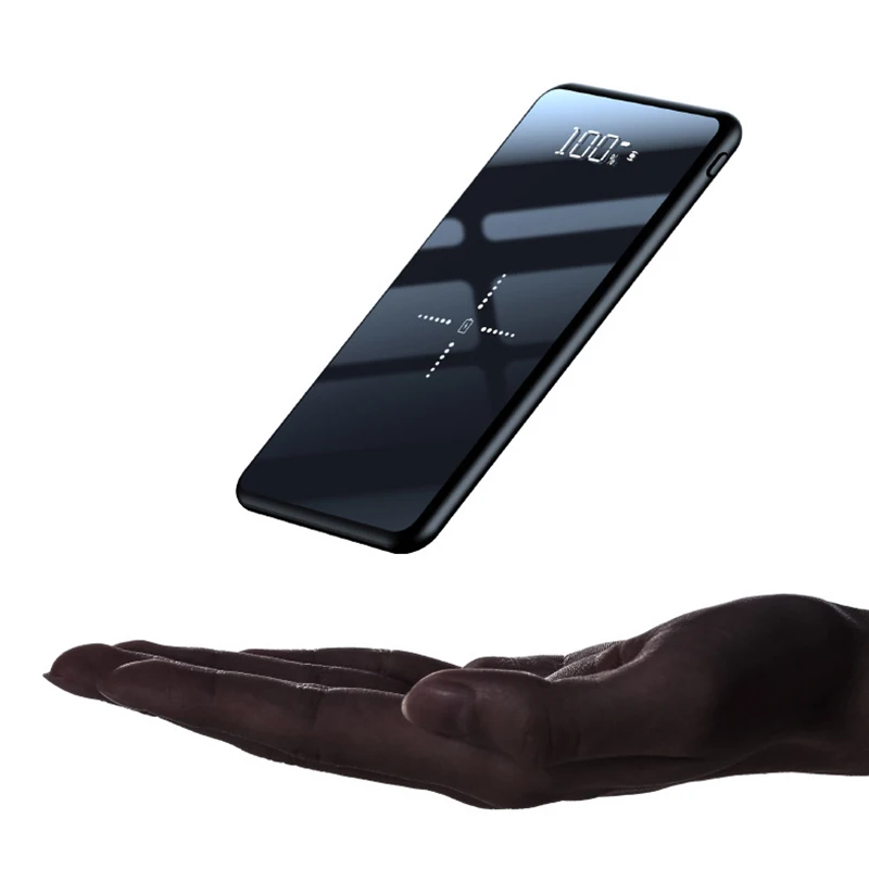 Slim LCD Mirror Screen Power Bank 10000 mAh Portable Fast Charging Ultra thin Powerbank External Battery Mobile Phone Charger