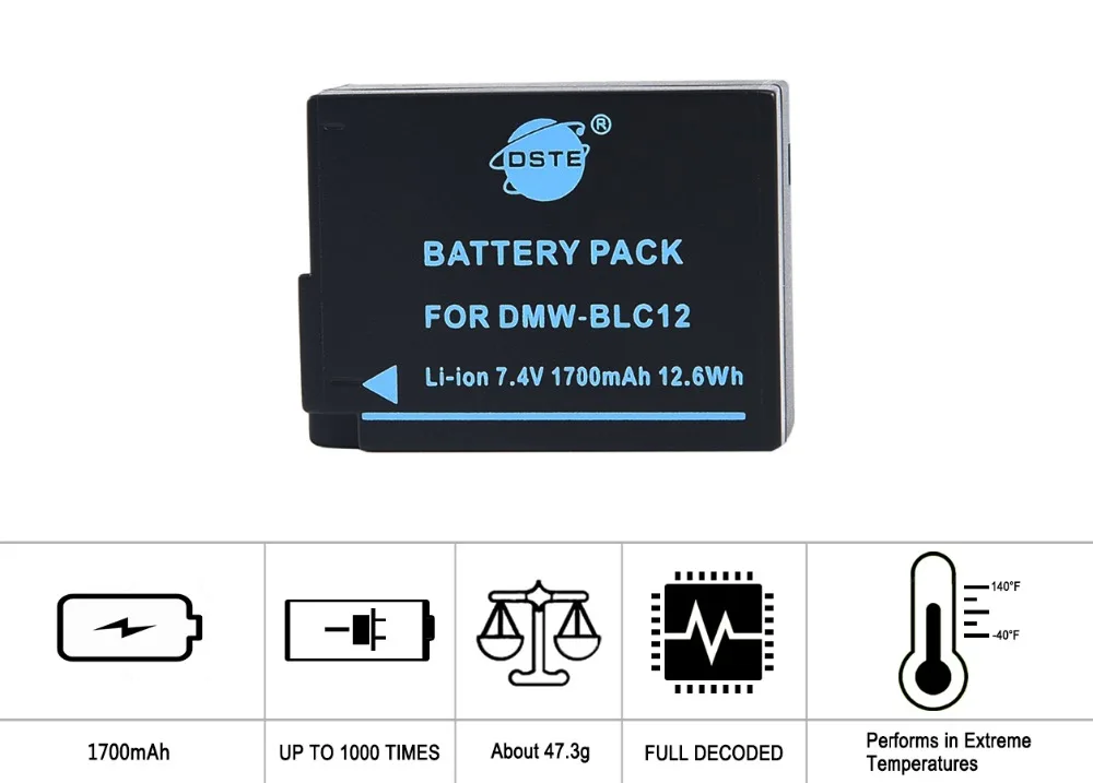 DSTE DMW-BLC12 Camera Battery for Panasonic DC-G90 DC-G95 DMC-G6 DMC-G7 FZ2000 FZ2500 FZ1000 GX8 G85 V-LUX4