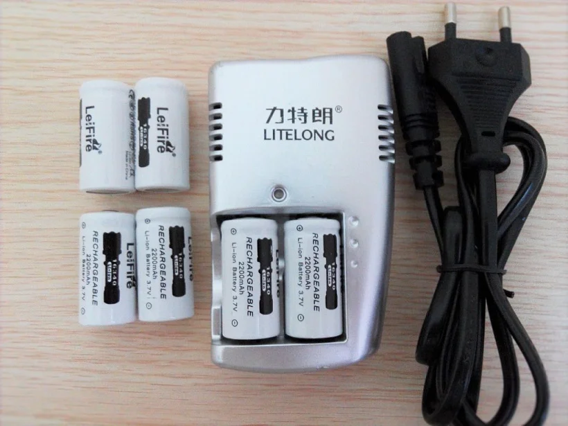 4pcs 3.7v 2200mAh CR123A rechargeable lithium battery+1pcs USB Charger 16340 18650 18500 14500 CR123A Battery Charger