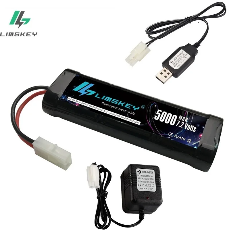 7.2V 5000mAh Ni-MH battery and 7.2v charger for RC toys tank car Airplane Helicopter With Tamiya Connectors 1/16 7.2 v battery