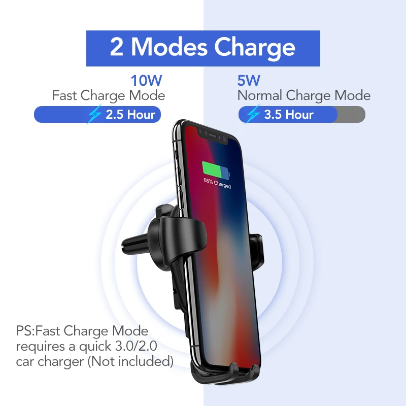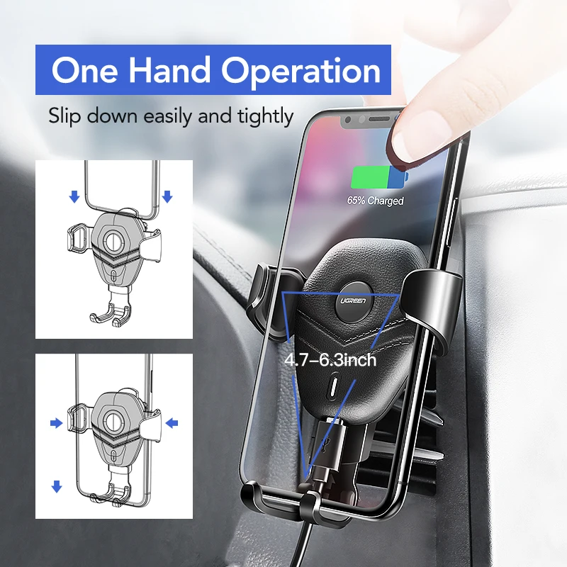 Hot Sale Ugreen Wireless Charger Car Phone Holder for Samsaung S10 S9 Fast Wireless Charging for iPhone X Xr