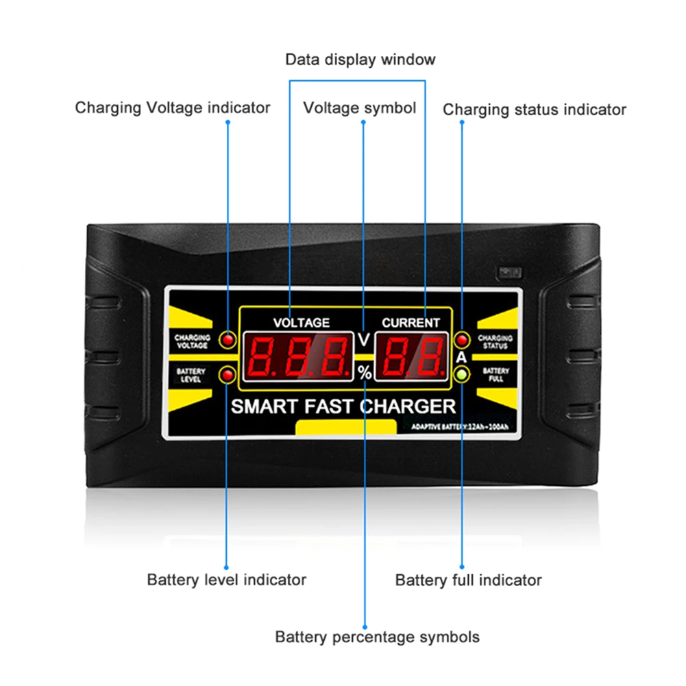 12V 6A Motorcycle Car Battery Charger Fully Intelligent Repair Lead Acid Storage Charger Moto Intelligent LCD Display