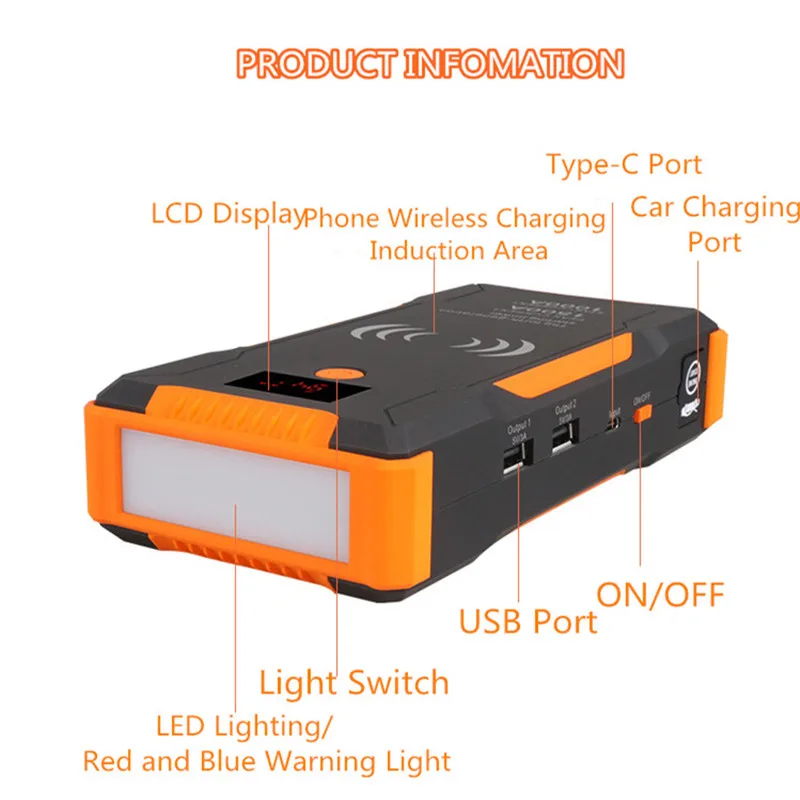 Big Promo 12V 22000mAh Car jump Starter Booster 1500A 400A Power Bank Quick Wireless Charing Emergency Car Ju