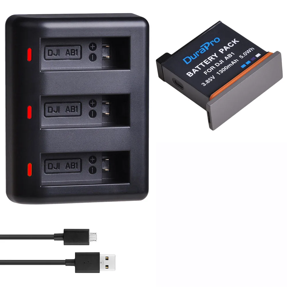 Big Promo DuraPro 2pcs 1300mAH AB1 Replacement Camera Battery Pack + LED 3-Slots USB Charger for DJI Osmo AB1