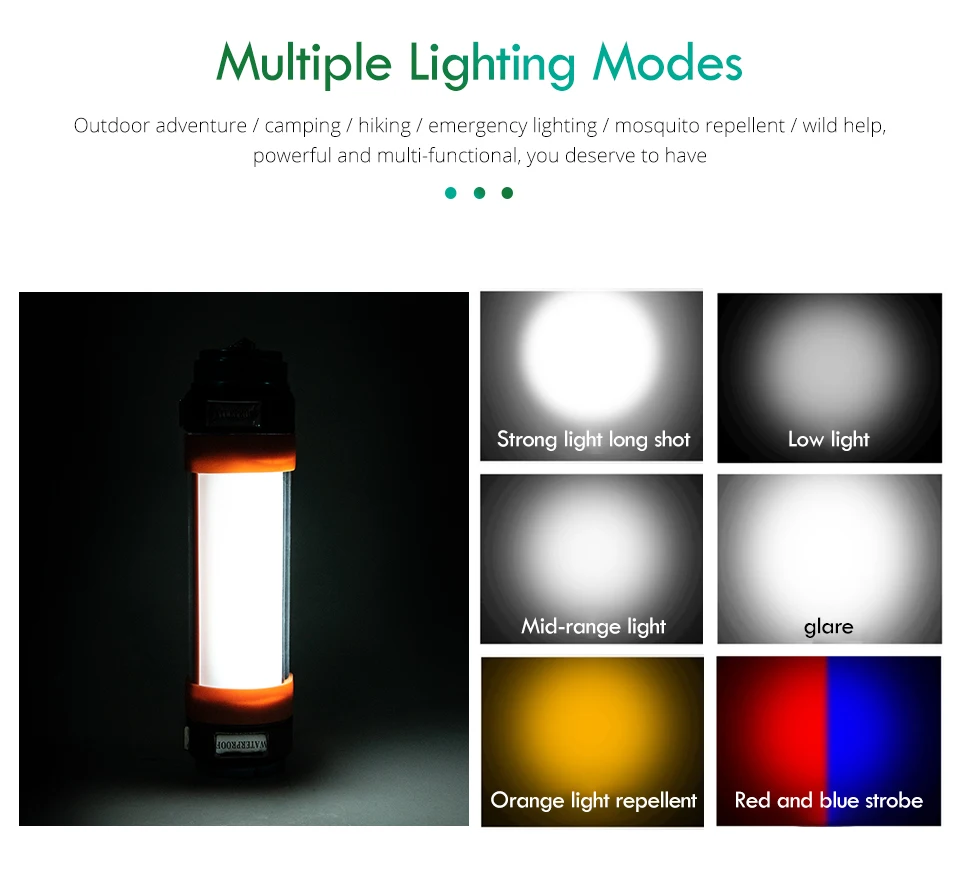 LED Camping Lantern with Magnet Tent Light USB Charging Outdoor Emergency High Power Light 6 Modes Flashlight Mosquito Repellent
