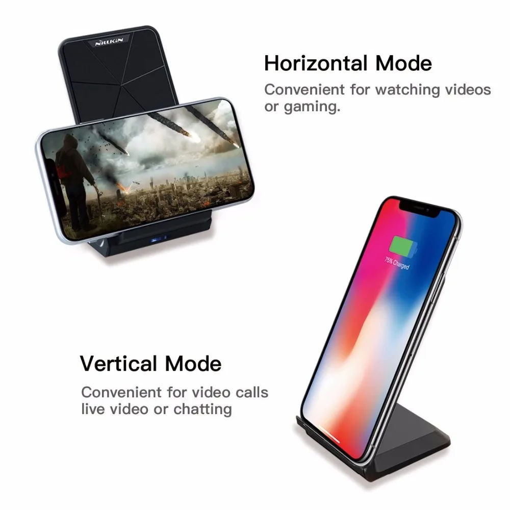Buy Now NILLKIN Qi Wireless Charger Stand for iPhone XS/XR/X/8/8 Plus Fast 10W Wireless Charger For Samsung