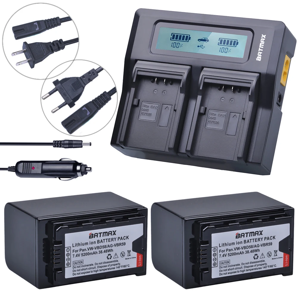 Best Product 2Pcs 5200mAh VW-VBD58 VBD29 VBD58 VBD78 Batteries + Rapid LCD Dual Charger Kits for Panasonic AJ-HP