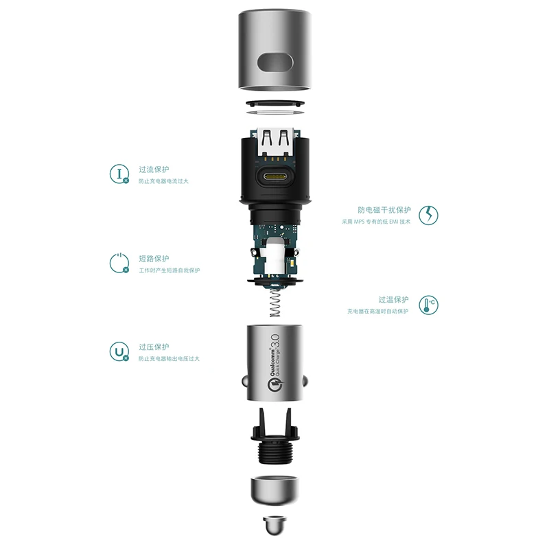 Hot Sale Original Xiaomi Car Charger QC 3.0 Metal Dual USB Ports Quick Charge 5V/3A 9V/2A 12V/1.5A 36W For A