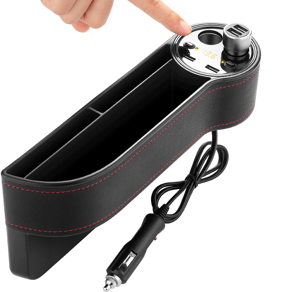 Hot Sale Storage Box Car Organizer Premium PU Leather Car Seat Gap Filler with 2 USB Chargers and 2 Cigar Li