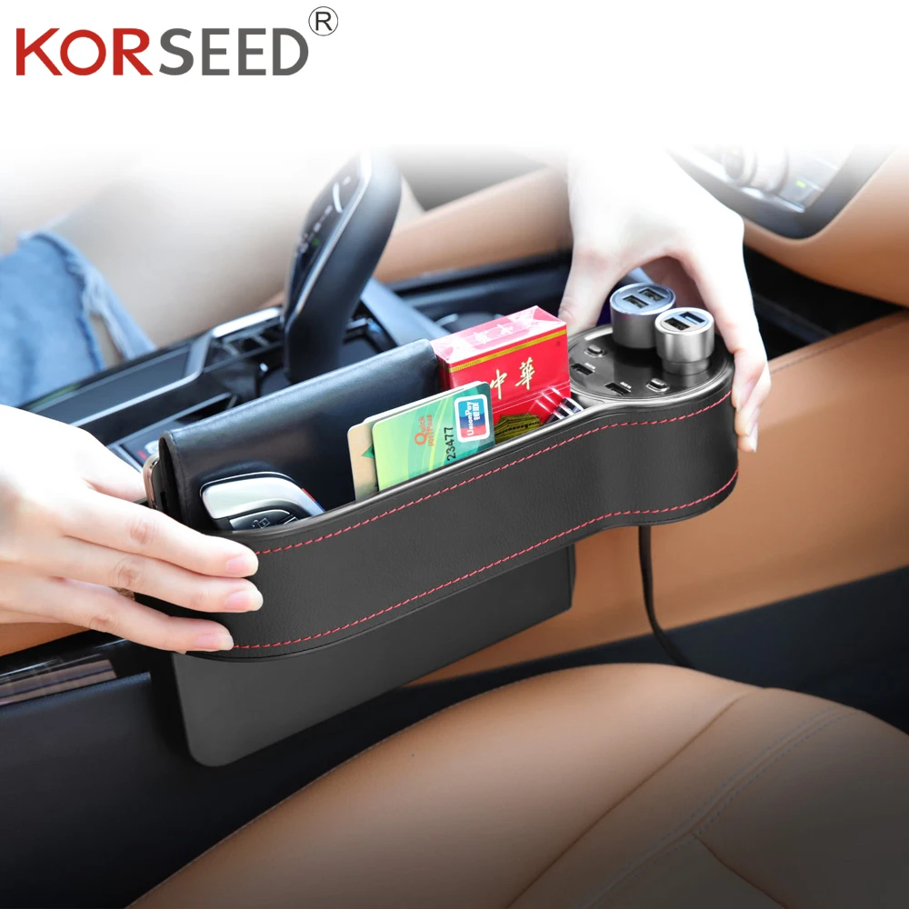 Big Promo Storage Box Car Organizer Premium PU Leather Car Seat Gap Filler with 2 USB Chargers and 2 Cigar Li